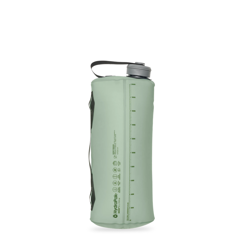 The great outdoors just got greater. The Seeker™ 2L is HydraPak’s ultra-light, durable water storage bag for camping, backpacking, you name it. It collapses down to the size of a fist, with a coated handle that makes easy to pour and transport. The leakproof, tethered cap is filtration compatible making it the perfect tool for the long haul.