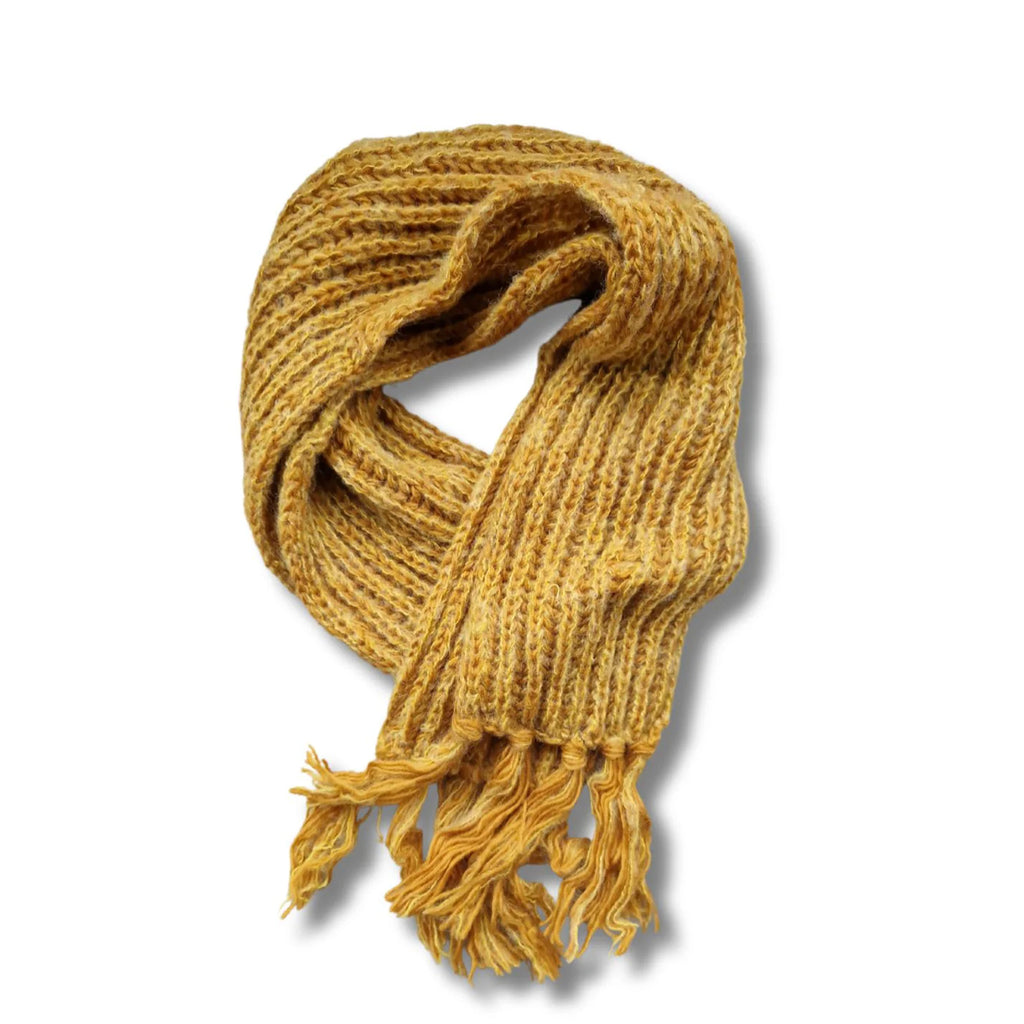 Hand knitted wool scarf with tasseled ends, perfect for wrapping up on chilly days! Soft and breathable, wool offers insulation without leaving you feel too hot.