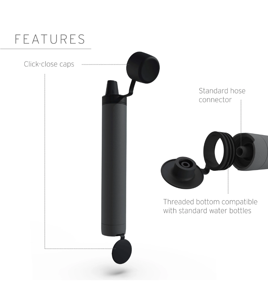 An upgrade to the classic personal straw, the peak series adds much needed multi functionality into the design of the straw. The Straw will now allow one to screw a regular plastic bottle into the end, so you can use a plastic water bottle as a means of filtering water for use in cooking.